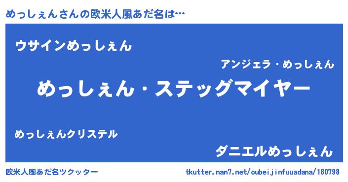 | 胡散臭い通販商品みたいなあだ名 | 『全米が絶賛したサプリメント…その名も「めっしぇん」』 |