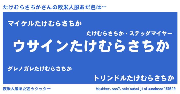 | 男性向けラノベタイトル風あだ名 | 『たけむらさちかの嫁は女の子じゃないと思った?』 |