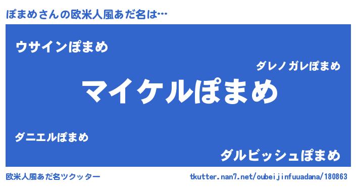 | 男性向けラノベタイトル風あだ名 | 『ぽまめの憂鬱』『魔弾の王とぽまめ』 |