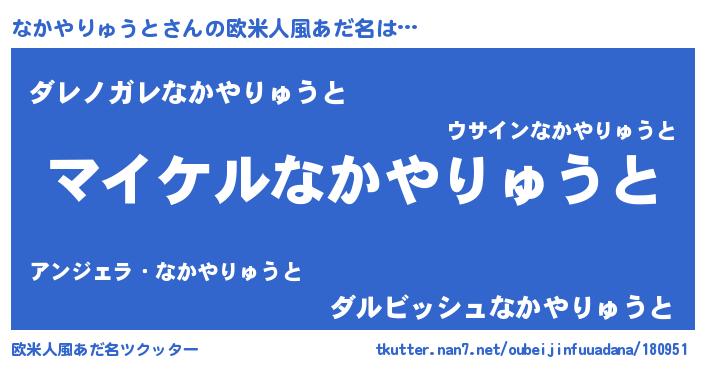 | 男性向けラノベタイトル風あだ名 | 『なかやりゅうとの憂鬱』 |