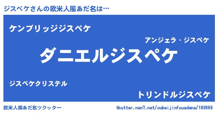 | 男性向けラノベタイトル風あだ名 | 『おまえをオタクにしてやるから、俺をジスペケにしてくれ! 』 |