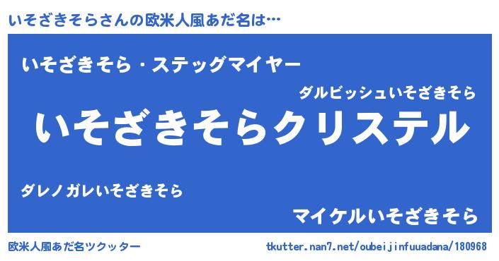 | 男性向けラノベタイトル風あだ名 | 『やはりいそざきそらの青春ラブコメはまちがっている 』 |