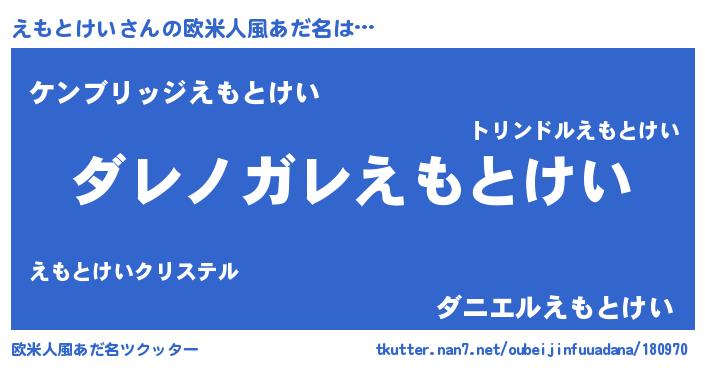| 意味不明あだ名 | 『住所不定無職えもとけい(12歳)』 |