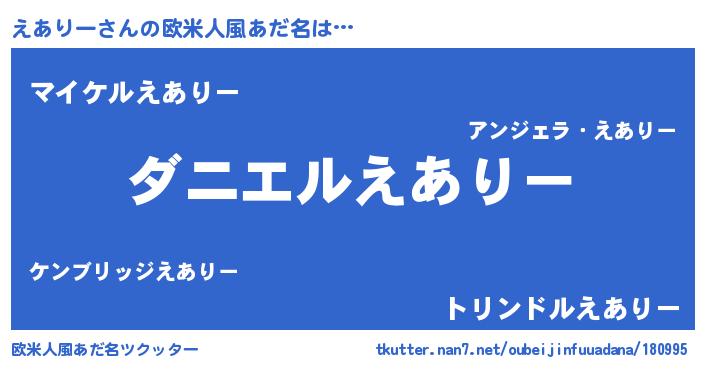 | ヘコむあだ名 | 『えあにー』『えあっ子』『豆乳』 |