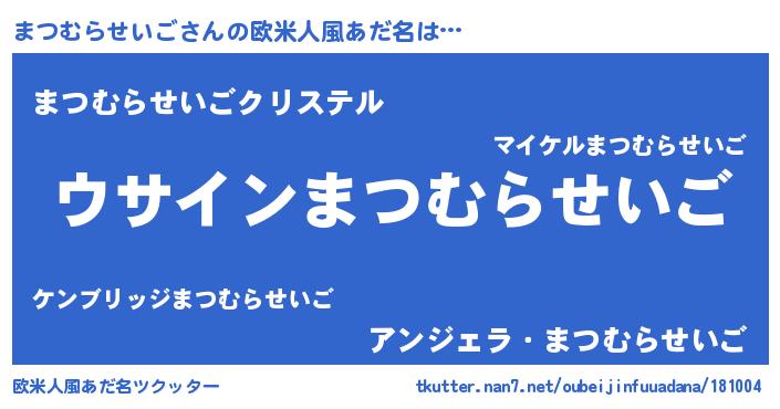 | 意味不明あだ名 | 『とにかく怪しいまつむらせいご』 |