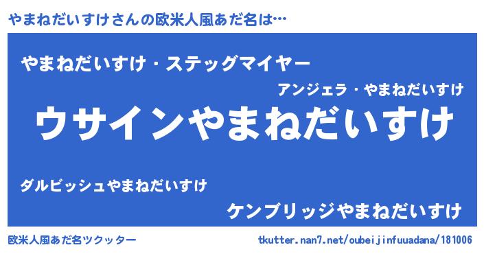 | 男性向けラノベタイトル風あだ名 | 『やまねだいすけの嫁は女の子じゃないと思った?』 |