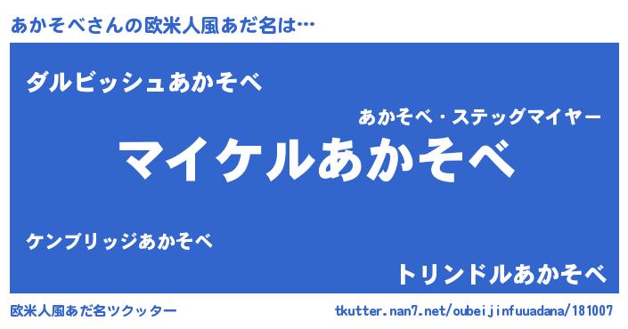 | 男性向けラノベタイトル風あだ名 | 『アカソベアートオンライン』 |