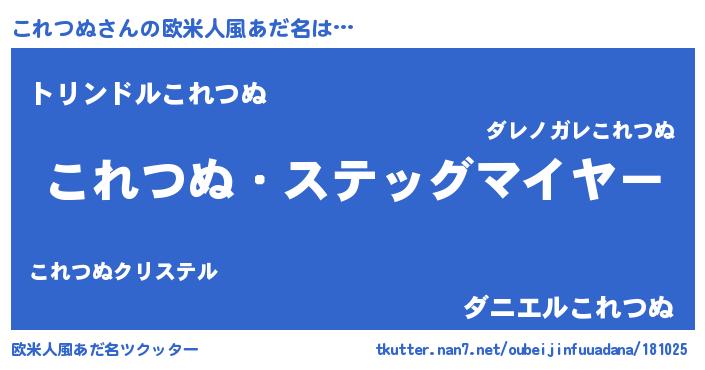 | 男性向けラノベタイトル風あだ名 | 『うちのこれつぬが世界を掌握している!』 |