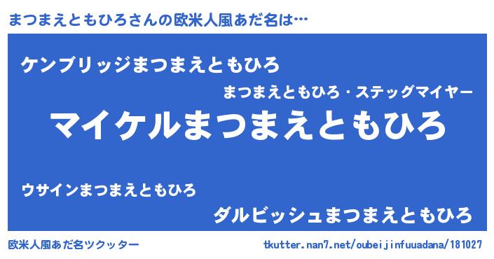 | 男性向けラノベタイトル風あだ名 | 『まつまえともひろの憂鬱』 |