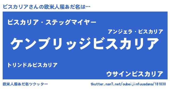 | 男性向けラノベタイトル風あだ名 | 『Re:ビスカリアから始める異世界生活』 |