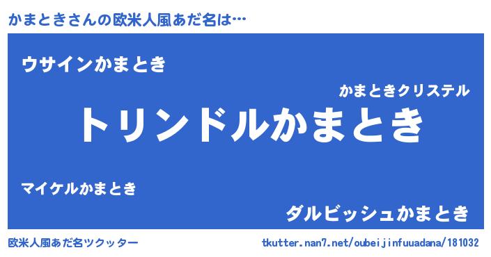 | 男性向けラノベタイトル風あだ名 | 『カマトキスレイヤー』 |