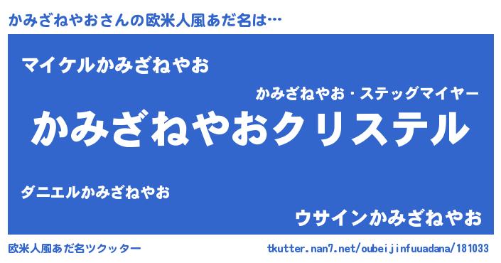 | 意味不明あだ名 | 『かみざねやおフォーエバー』 |