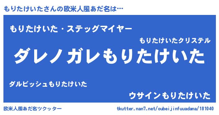 | 男性向けラノベタイトル風あだ名 | 『魔弾の王ともりたけいた』 |