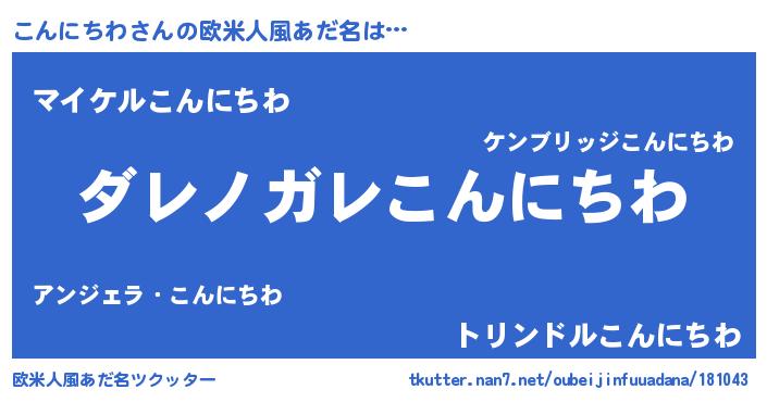 | 男性向けラノベタイトル風あだ名 | 『この素晴らしい世界にこんにちわを!』 |