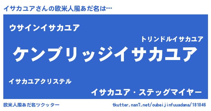 | 男性向けラノベタイトル風あだ名 | 『Re:イサカユアから始める異世界生活』 |