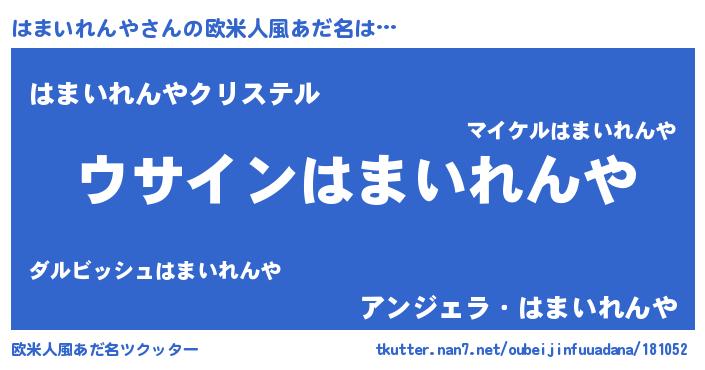| 男性向けラノベタイトル風あだ名 | 『はまいれんやの嫁は女の子じゃないと思った?』 |