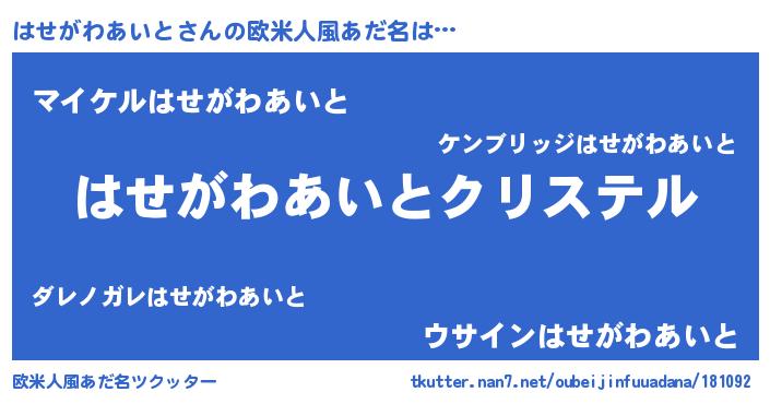 | ファンタジー風あだ名 | 『エターナルハセガワアイトー』 |