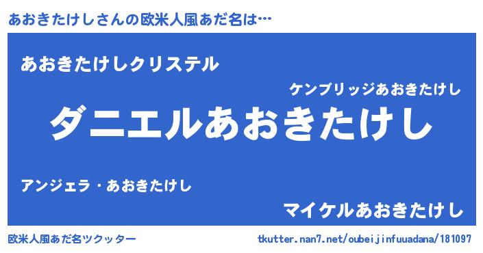 | 女子向けラノベタイトル風あだ名 | 『あおきたけし恋絵巻』 |