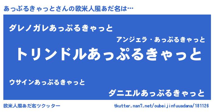 | 男性向けラノベタイトル風あだ名 | 『あっぷるきゃっと~年齢イコール彼女いない歴の魔法使い~』 |