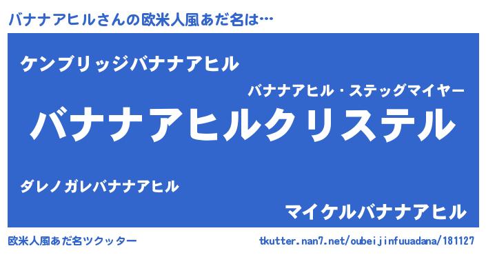 | 意味不明あだ名 | 『バナナアヒルフォーエバー』 |