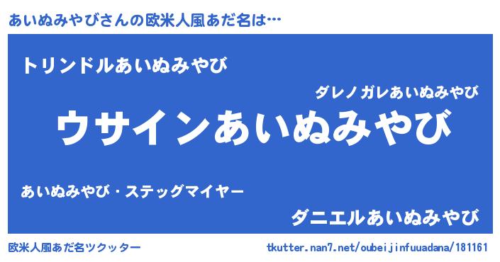 | ポケモン風あだ名 | 『ヒアイヌミヤビ』『アイキング』 |