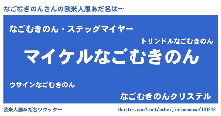 | 男性向けラノベタイトル風あだ名 | 『なごむきのんの憂鬱』 |