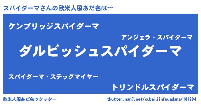 | 胡散臭い通販商品みたいなあだ名 | 『絶対に幸福をもたらす健康食品…その名も「スパイダーマ」』 |