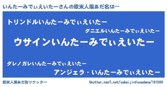 | 男性向けラノベタイトル風あだ名 | 『いんたーみでぃえいたーの嫁は女の子じゃないと思った?』 |