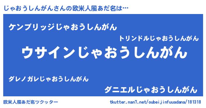 | 女子向けラノベタイトル風あだ名 | 『じゃおうしんがん様がみてる』 |