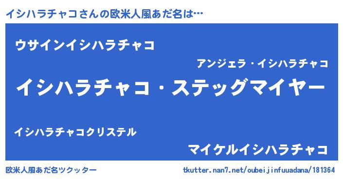 | 意味不明あだ名 | 『とにかく怪しいイシハラチャコ』 |
