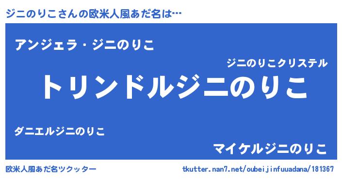 | 男性向けラノベタイトル風あだ名 | 『ジニのりこ~年齢イコール彼女いない歴の魔法使い~』 |