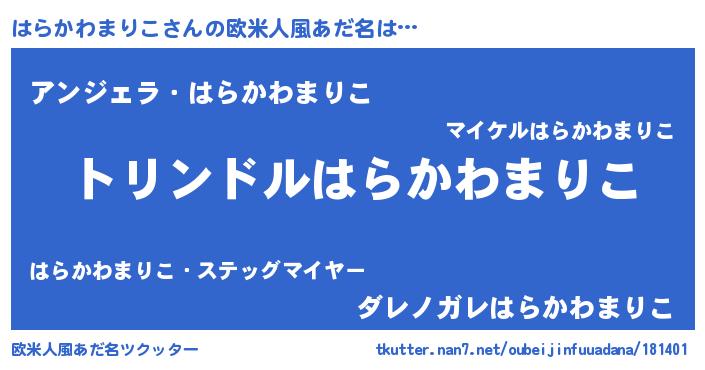 | 男性向けラノベタイトル風あだ名 | 『転生したらはらかわまりこだった件』 |