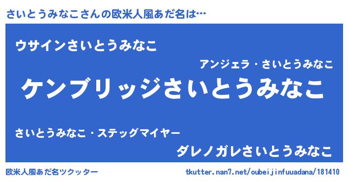 | 女子向けラノベタイトル風あだ名 | 『さいとうみなこなんてお断りですっ。』 |
