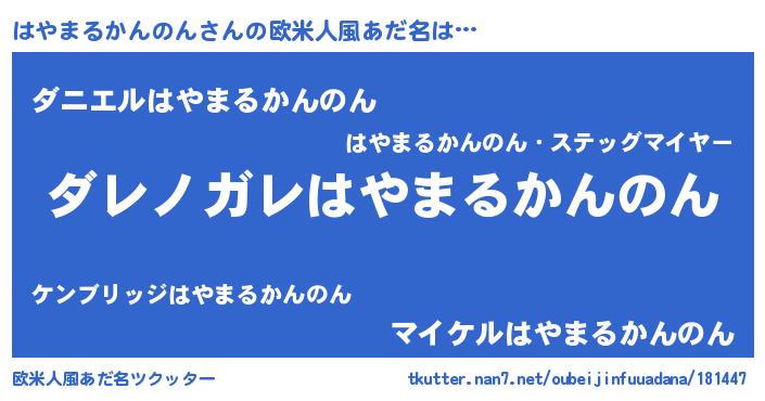 | 男性向けラノベタイトル風あだ名 | 『魔弾の王とはやまるかんのん』 |