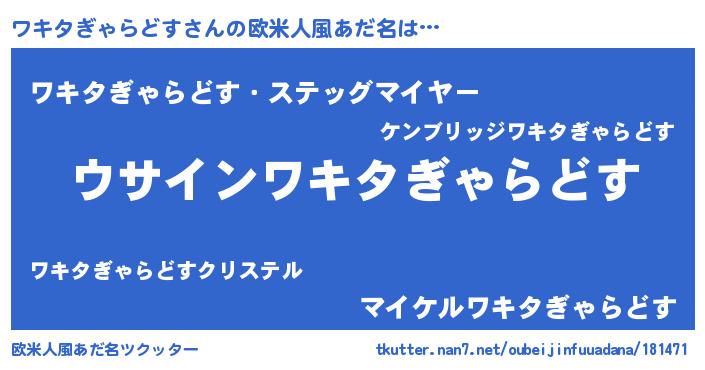 | 男性向けラノベタイトル風あだ名 | 『ワキタぎゃらどすの嫁は女の子じゃないと思った?』 |