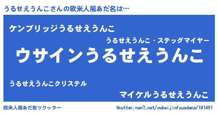 | 男性向けラノベタイトル風あだ名 | 『うるせえうんこの嫁は女の子じゃないと思った?』 |