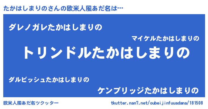 | 男性向けラノベタイトル風あだ名 | 『タカハシマリノスレイヤー』 |