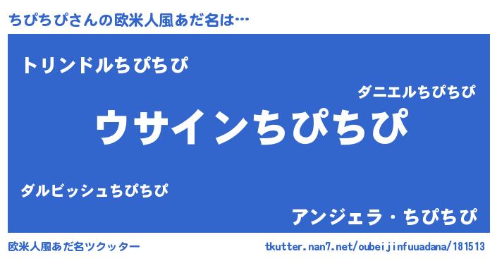 | 胡散臭い通販商品みたいなあだ名 | 『信頼と実績のサプリメント…その名も「ちぴちぴ」』 |