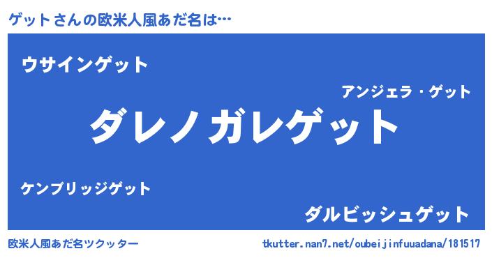 | 意味不明あだ名 | 『住所不定無職ゲット(79歳)』『自称ゲット』 |