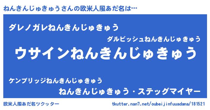 | ポケモン風あだ名 | 『ヒネンキンジュキュウ』『ネーンイ』 |