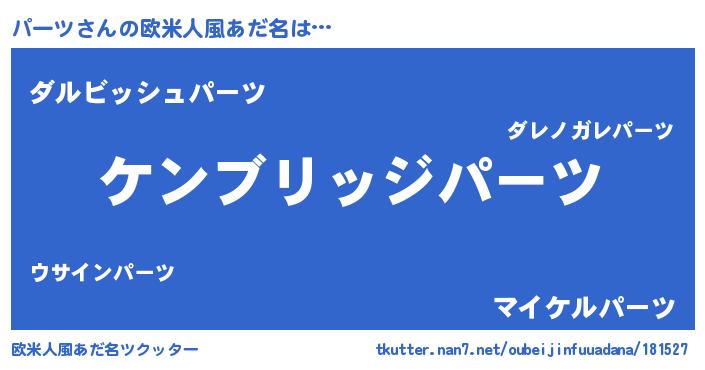 | 男性向けラノベタイトル風あだ名 | 『魔法科高校のパーツ』『パーツの憂鬱』 |