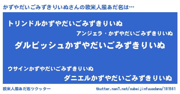 | 意味不明あだ名 | 『永久保存かずやだいごみずきりいぬ』 |