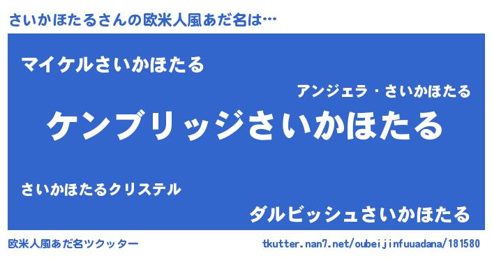 | 男性向けラノベタイトル風あだ名 | 『Re:さいかほたるから始める異世界生活』 |