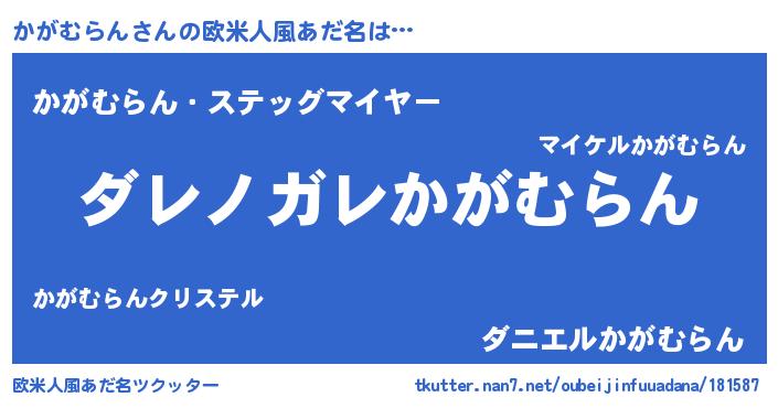 | 男性向けラノベタイトル風あだ名 | 『この素晴らしい世界にかがむらんを!』 |