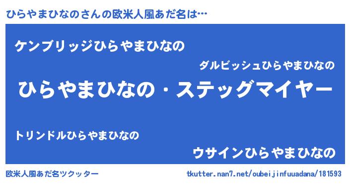 | 意味不明あだ名 | 『自称ひらやまひなの』 |