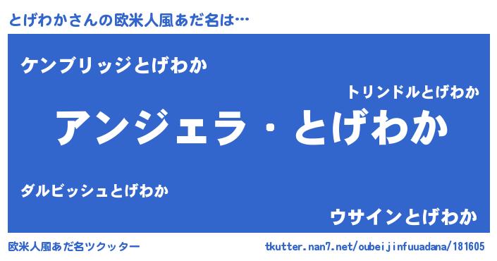 | ピコ太郎風あだ名 | 『トゲ次郎』『ピコト郎』『トト太郎』 |