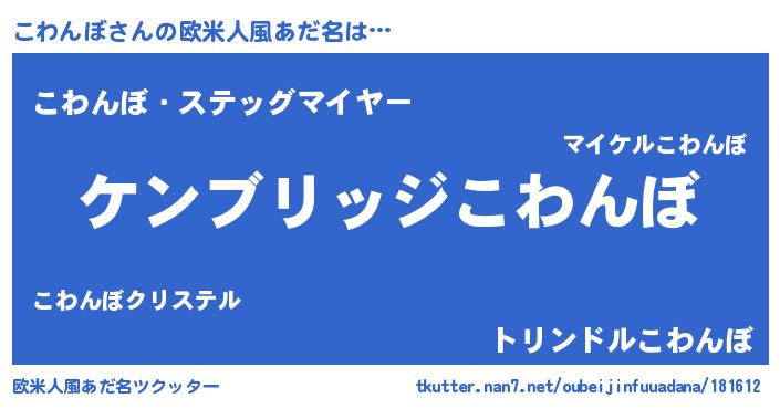 | 男性向けラノベタイトル風あだ名 | 『Re:こわんぼから始める異世界生活』 |