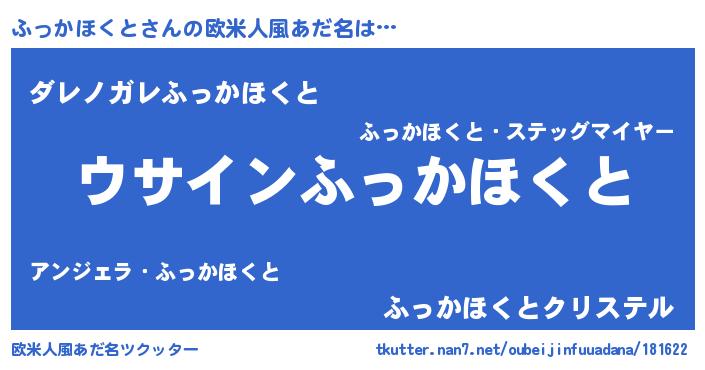 | 女子向けラノベタイトル風あだ名 | 『ふっかほくとの卵を拾いまして』 |