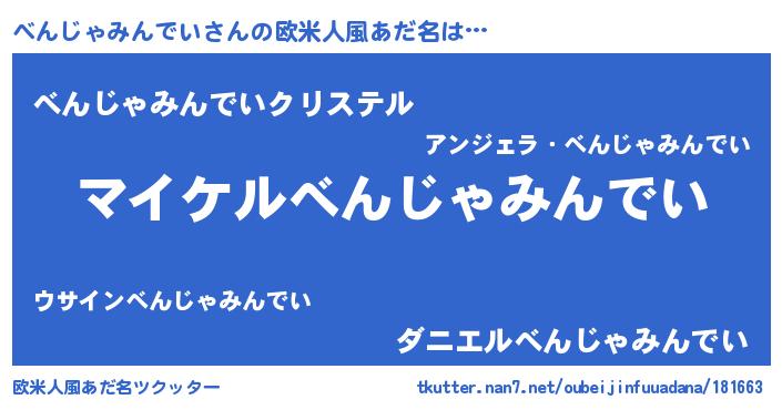 | 男性向けラノベタイトル風あだ名 | 『ベンジャミンデイアートオンライン』 |