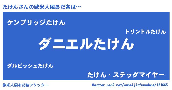 | ヘコむあだ名 | 『たけん(遠い目)』『たけっぺ』 |